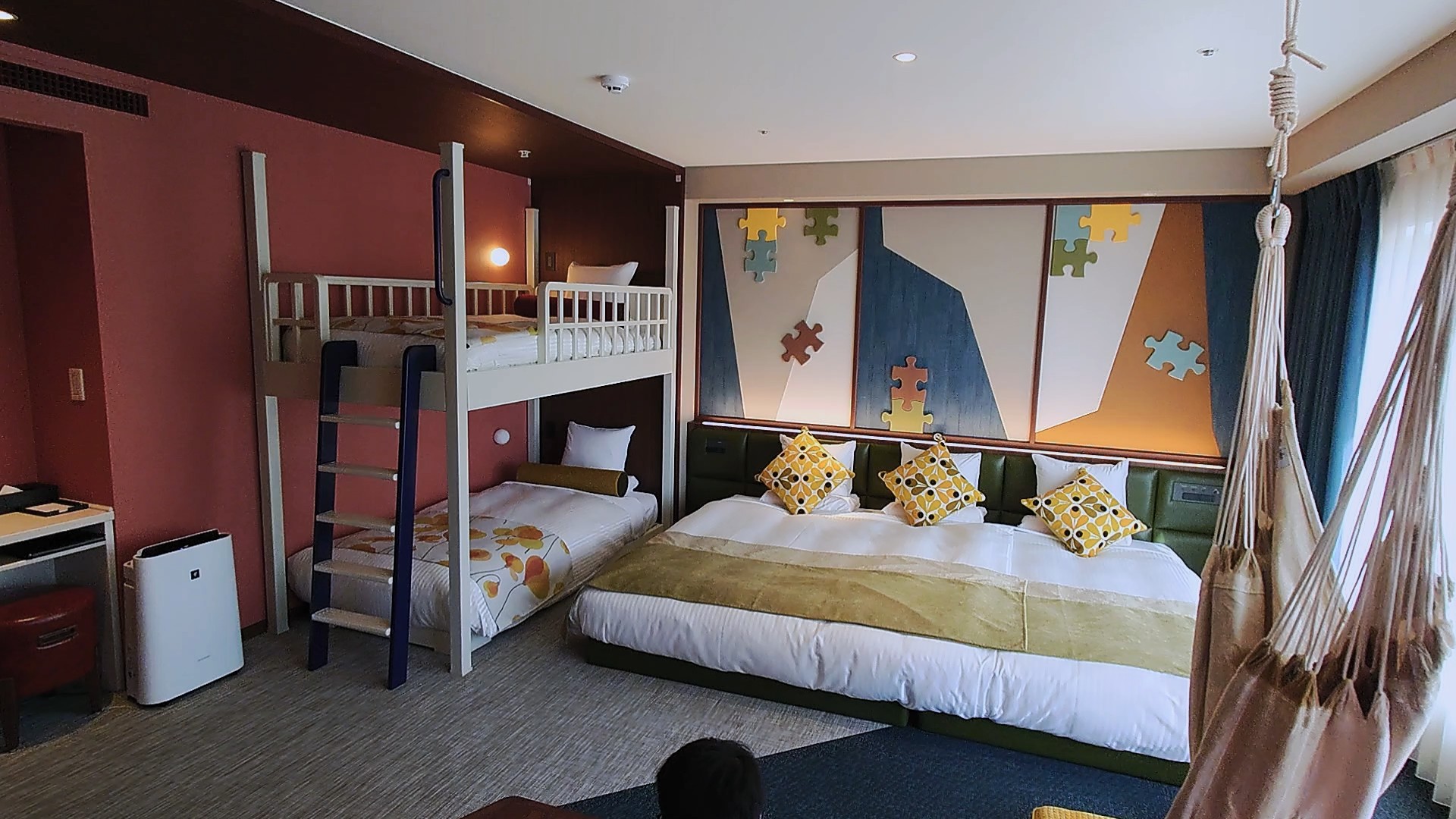 ベットが簡単につながるので親子4人でも広々寝ることができます。