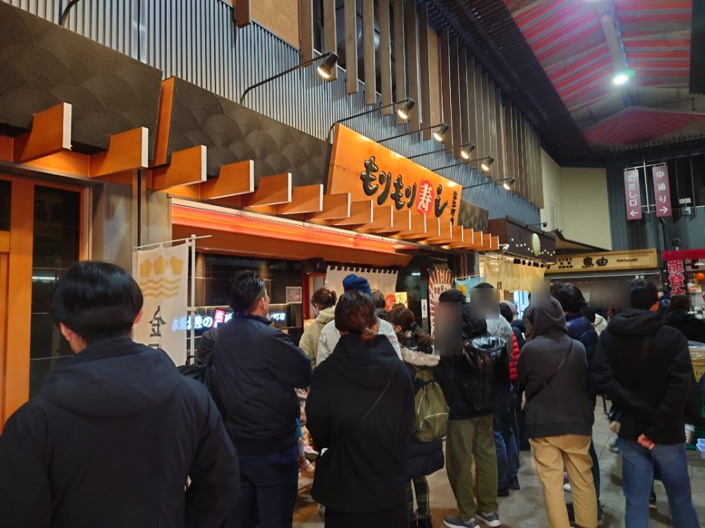 近江町市場に朝8時ころ到着。8時オープンのもりもり寿司はすでに大行列。9時オープンの山さん寿司に行ってみると1組待ち。時間は8時15分。