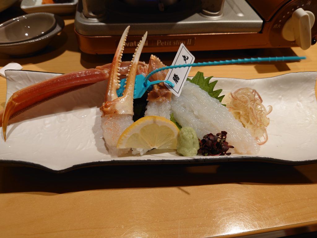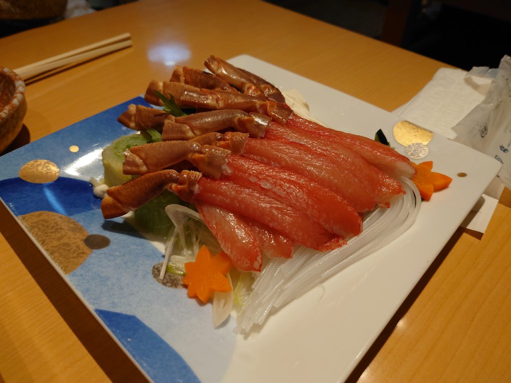 蟹刺し。まろやかで甘みがあってとてもおいしいかったです。