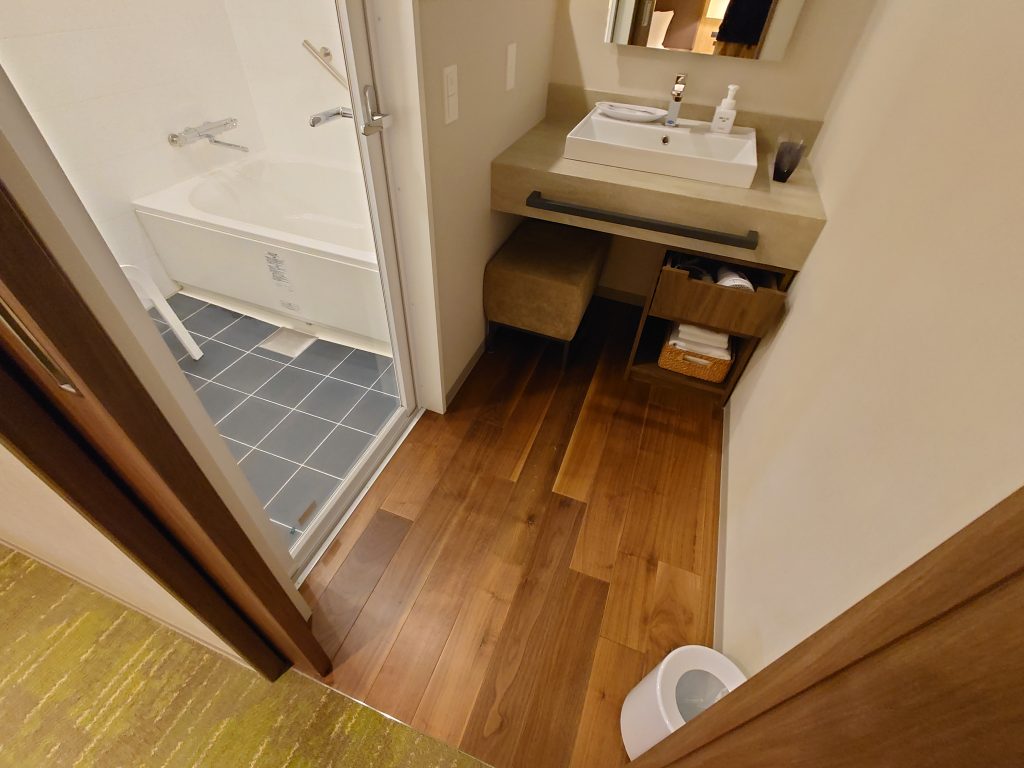 洗面台。子供用のアメニティグッズは用意されていませんでした。子供用の歯ブラシのみ持参していたので困ることはありませんでした。