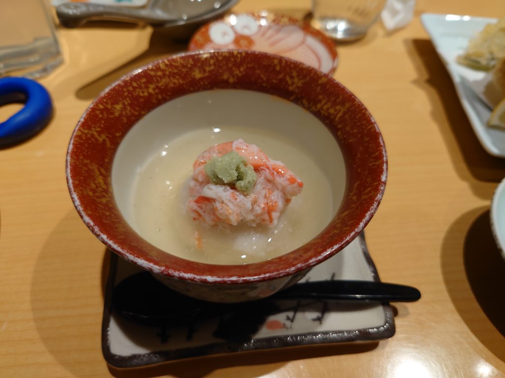 蟹しんじょ。わさびが利いて滑らかな口当たり。