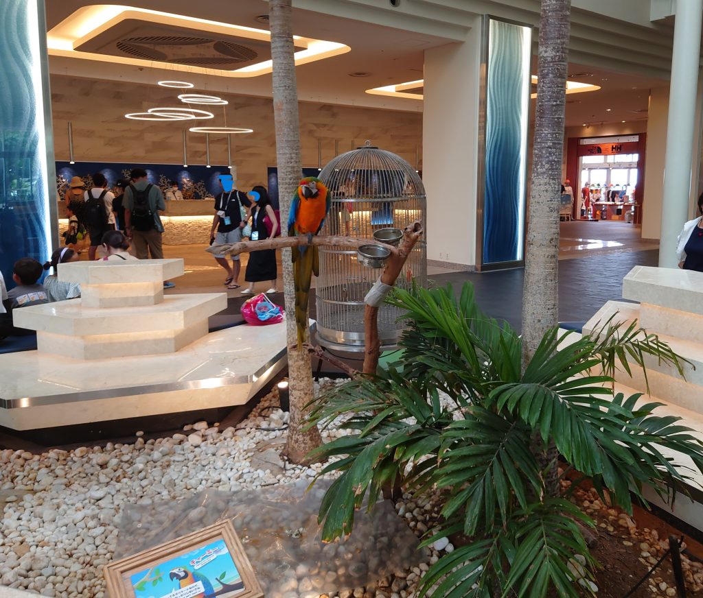 南国らしい鳥が入口で出迎えてくれます。