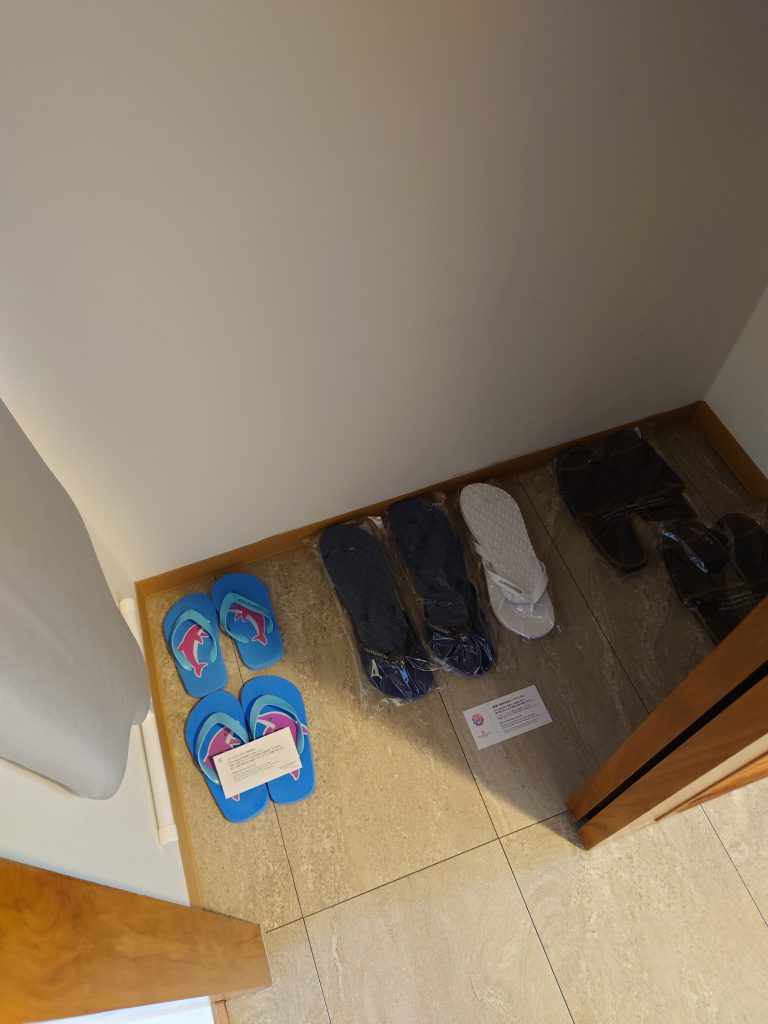 ビーチサンダルとスリッパも常備。持っていく必要も無いですね。