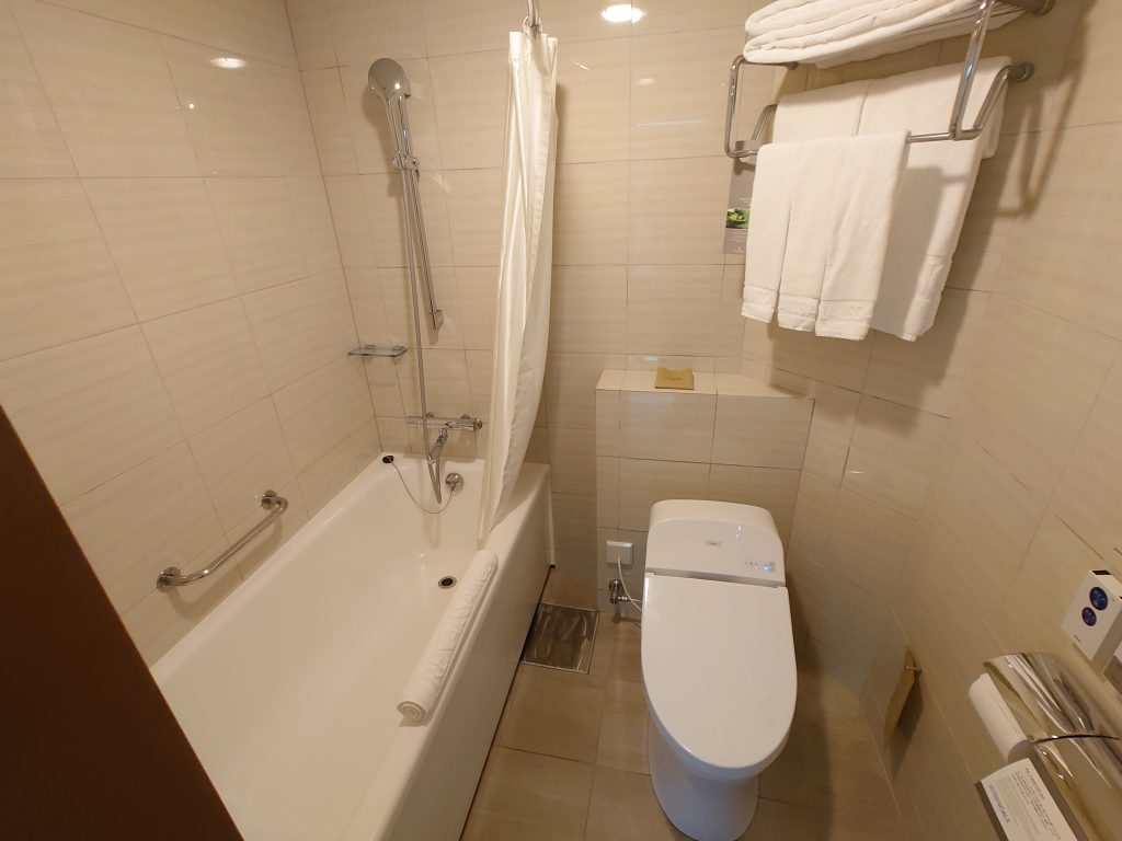 ユニットバス。シャワーの水量は多く、強さも十分。