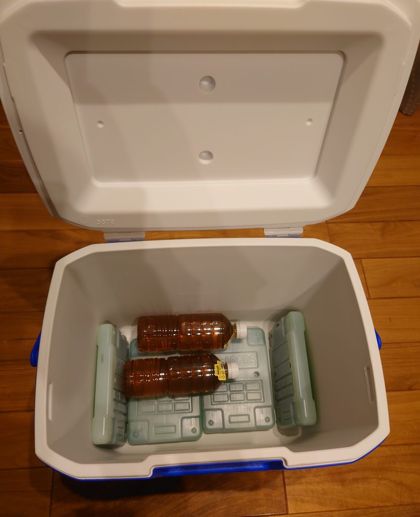 実際に使用した結果は、自宅を出発してから、1日半程度は庫内が冷えた状態をキープすることが出来ました。ホテルで冷凍することができなかったので、2日目の夜にブロックの氷を購入して袋ごと投入。翌日の夕方程度まで冷やすことが出来たので、途中で購入したお土産品も冷やすことができました。