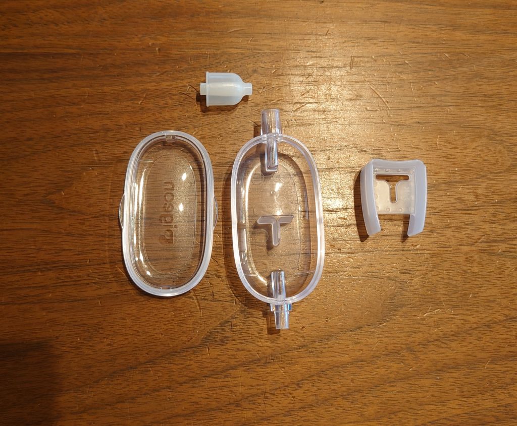 メンテナンスも簡単です。吸引した鼻水は、鼻水キャッチャーで止まる構造となっているので、洗うものは、鼻水キャッチャー、セパレーター、ふた、フィットノズルの4つのみ。シリコンチューブの洗浄は必要ないので非常に楽です。もちろん電動ポンプの洗浄も不要です。蛇口で20秒もあれば終わります。